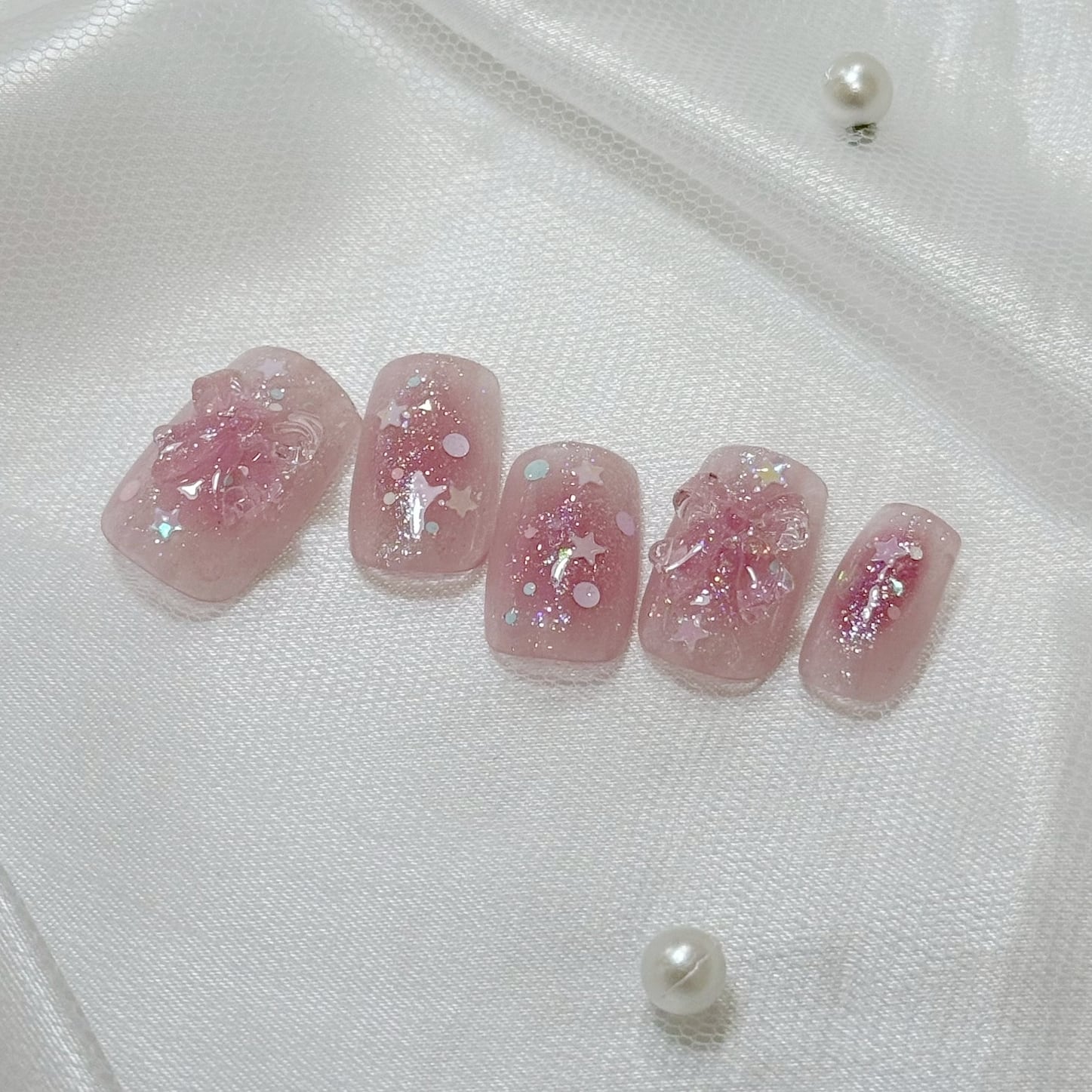 ♡1つ1つネイリストがお作りしておりますので、サンプルと全く同じとは限りません。お写真の光の加減で多少色やパーツの見え方が変わる場合がございます。気を付けながら作成しておりますが手作業ですので稀にホコリや細かい傷などが入ってしまう場合がございます。ご了承ください。