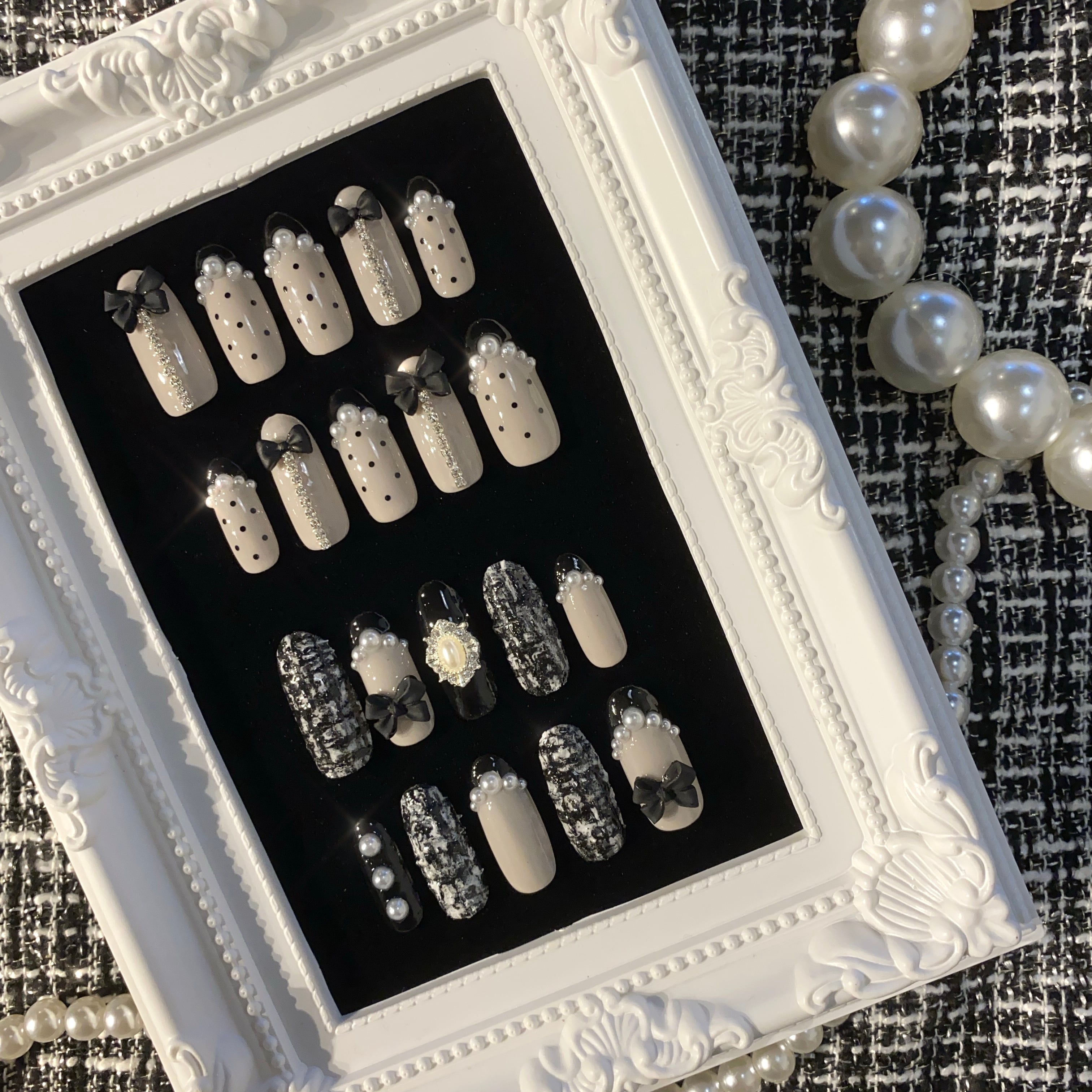 ♡1つ1つネイリストがお作りしておりますので、サンプルと全く同じとは限りません。お写真の光の加減で多少色やパーツの見え方が変わる場合がございます。気を付けながら作成しておりますが手作業ですので稀にホコリや細かい傷などが入ってしまう場合がございます。ご了承ください。