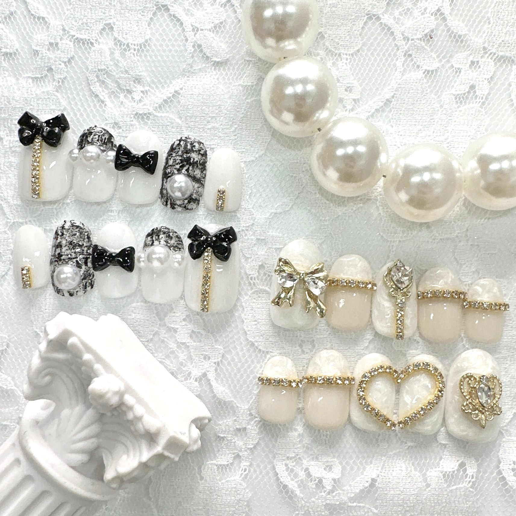 ♡1つ1つネイリストがお作りしておりますので、サンプルと全く同じとは限りません。お写真の光の加減で多少色やパーツの見え方が変わる場合がございます。気を付けながら作成しておりますが手作業ですので稀にホコリや細かい傷などが入ってしまう場合がございます。ご了承ください。