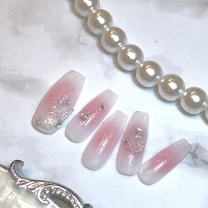 ♡1つ1つネイリストがお作りしておりますので、サンプルと全く同じとは限りません。お写真の光の加減で多少色やパーツの見え方が変わる場合がございます。気を付けながら作成しておりますが手作業ですので稀にホコリや細かい傷などが入ってしまう場合がございます。ご了承ください。