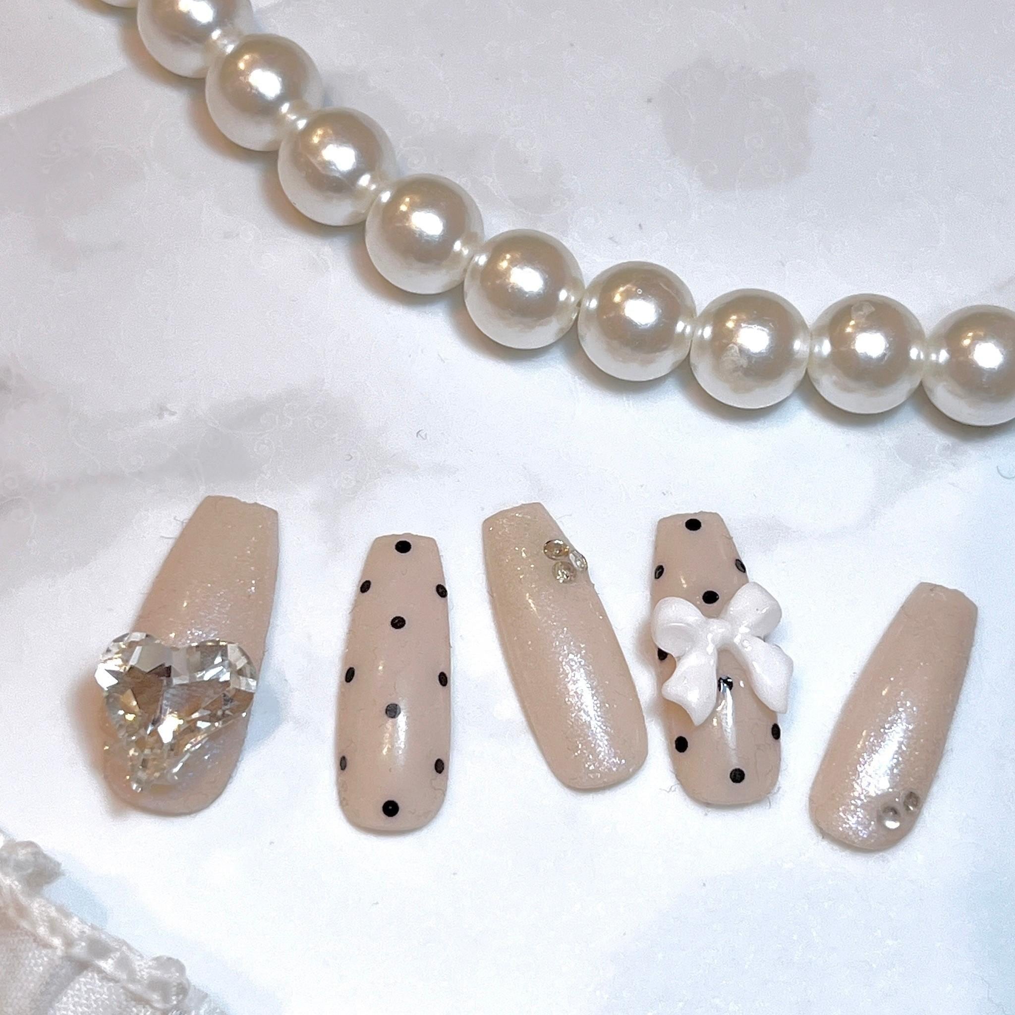 ♡1つ1つネイリストがお作りしておりますので、サンプルと全く同じとは限りません。お写真の光の加減で多少色やパーツの見え方が変わる場合がございます。気を付けながら作成しておりますが手作業ですので稀にホコリや細かい傷などが入ってしまう場合がございます。ご了承ください。